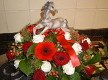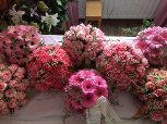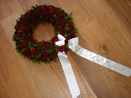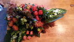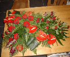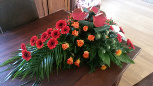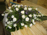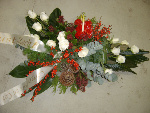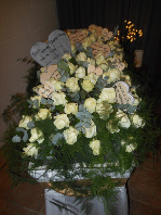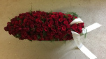 39. dit bloemstuk geheel van rozen gemaakt, ligt als een deken over de kist
